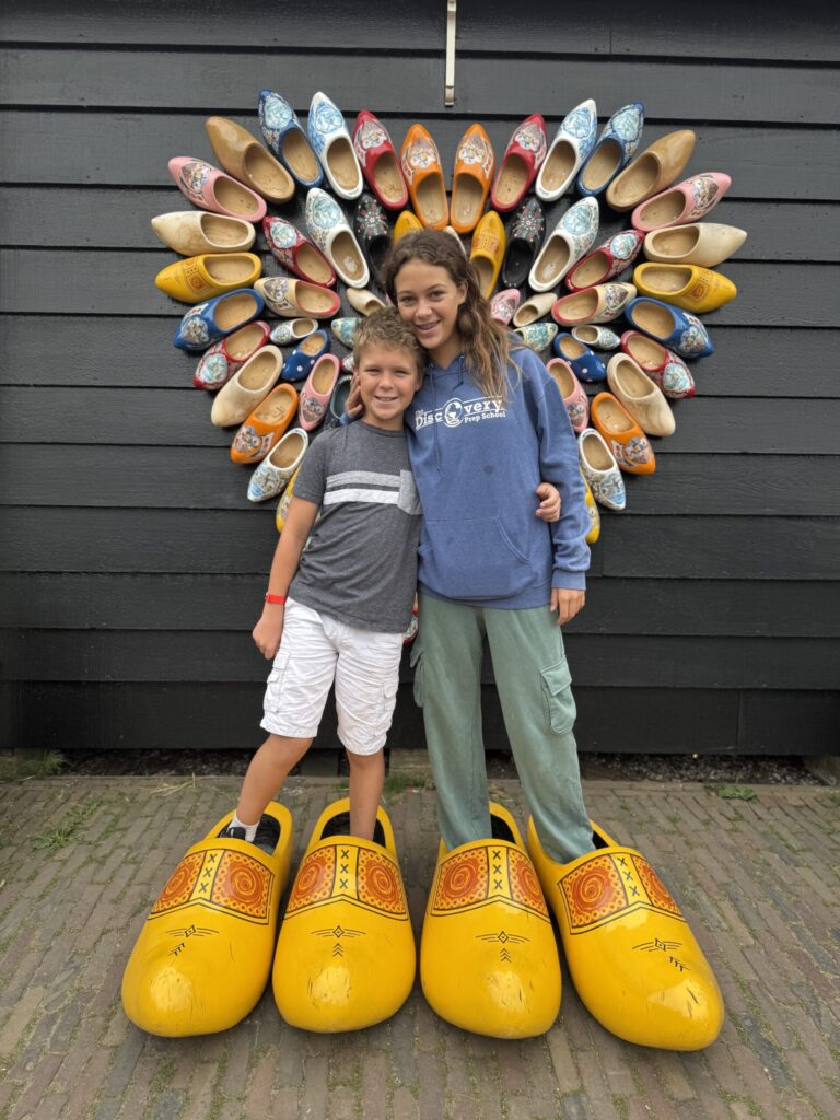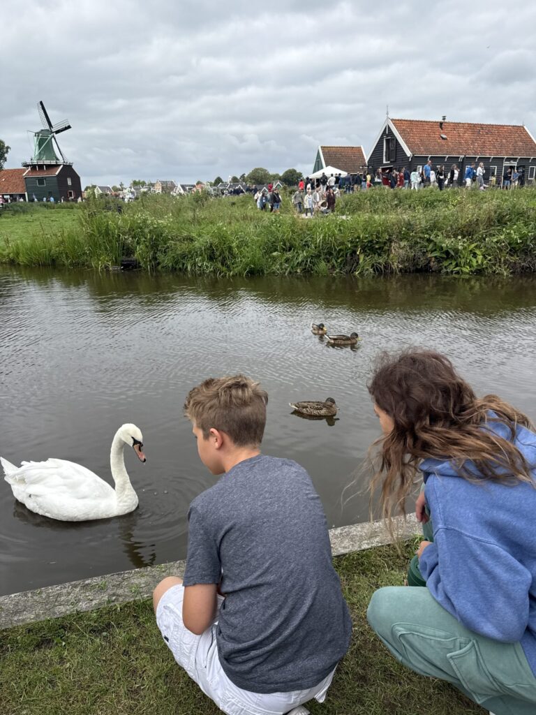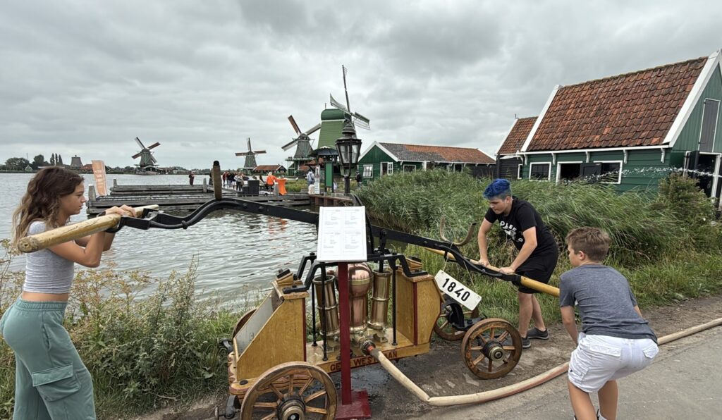 We enjoyed just wandering around. The kids worked together to use an old fashioned pump for a fire hose, fed swans, and checked out the cheese and the wooden clog museums.