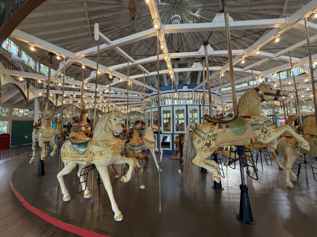The carousel was installed in 1906, one of the first in the world. All of the animals are hand carved from wood, some as far back as 1885. The carousel still uses its original engine from 1906!